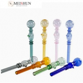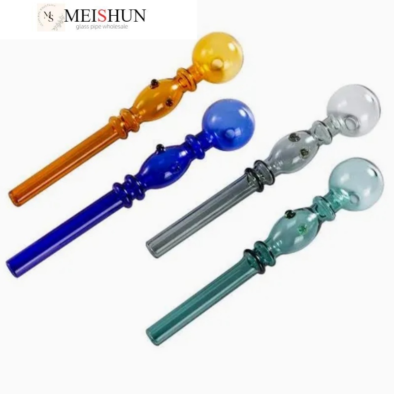 Wholesale 5.7 Inches Handmade Double Bubbles and Arm shaped Oil Burner - Experience the artistic charm of traditional glassblowing craftsmanship with this handmade colored oil burner. The double bubble design provides a small amount of water for cooling the vapor produced from heating concentrates, reducing irritation to the throat and lungs. This ensures a better flavor experience and a smoother, cooler hit.